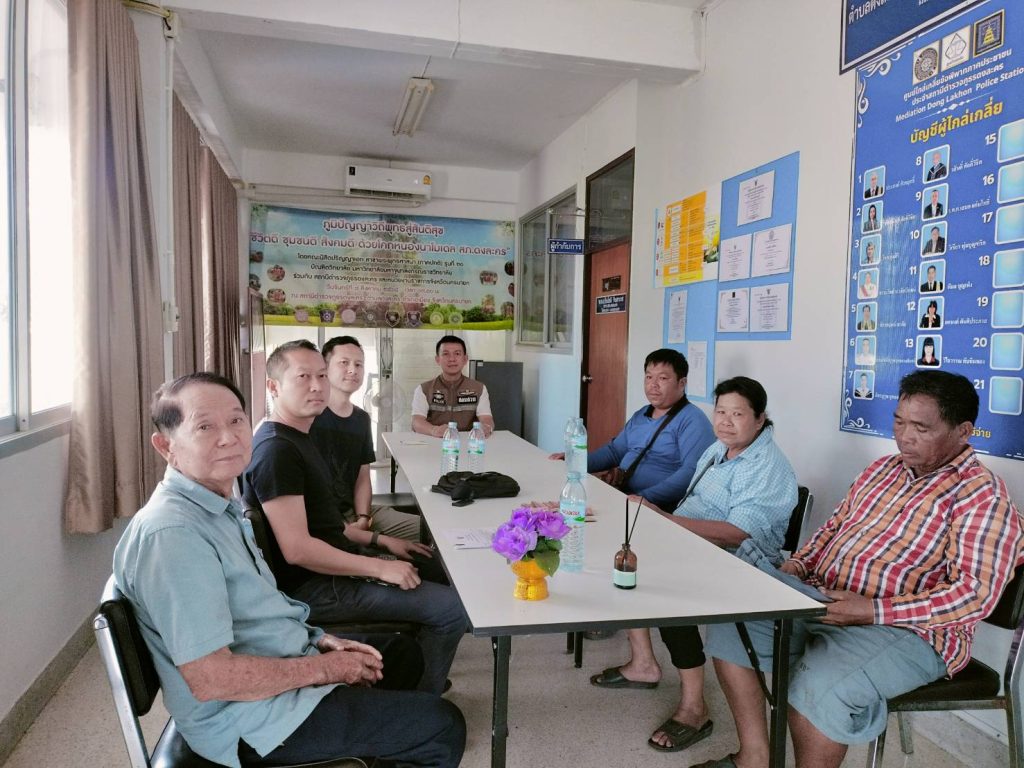 พ.ต.ต.นิติพัฒน์ รุ่งเรือง สว.(สอบสวน)ฯ ปรก.สภ.ดงละคร ร้อยเวร30 ไกล่เกลี่ยข้อพิพาทความผิดอันยอมความได้ กรณีคดีบุกรุกและสูบน้ำจากร่องน้ำข้างบ่อปลา ในพื้นที่ ม.3 ต.ศรีจุฬาฯ