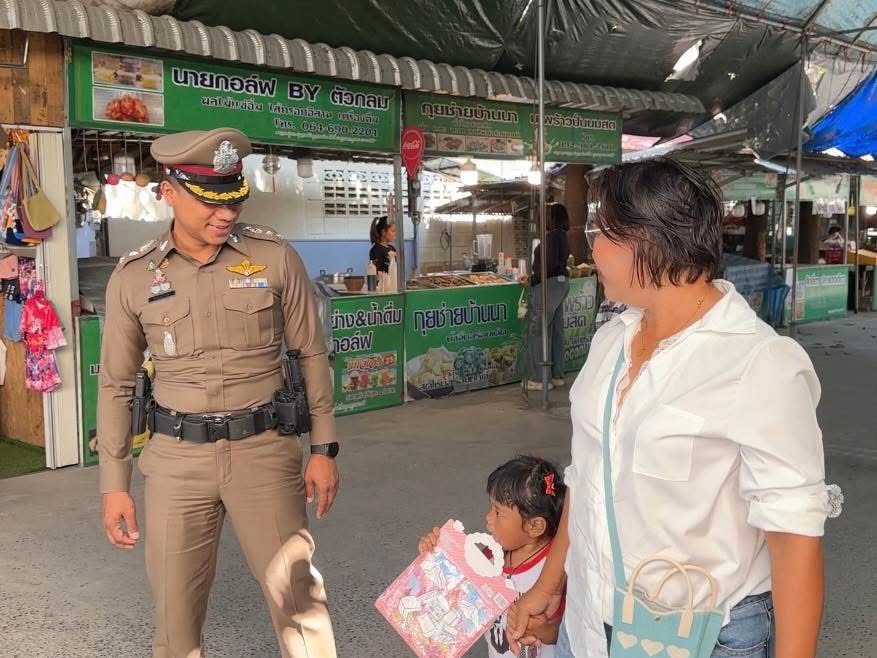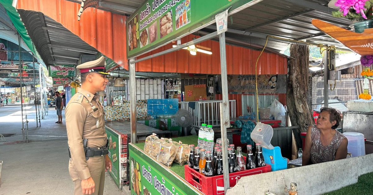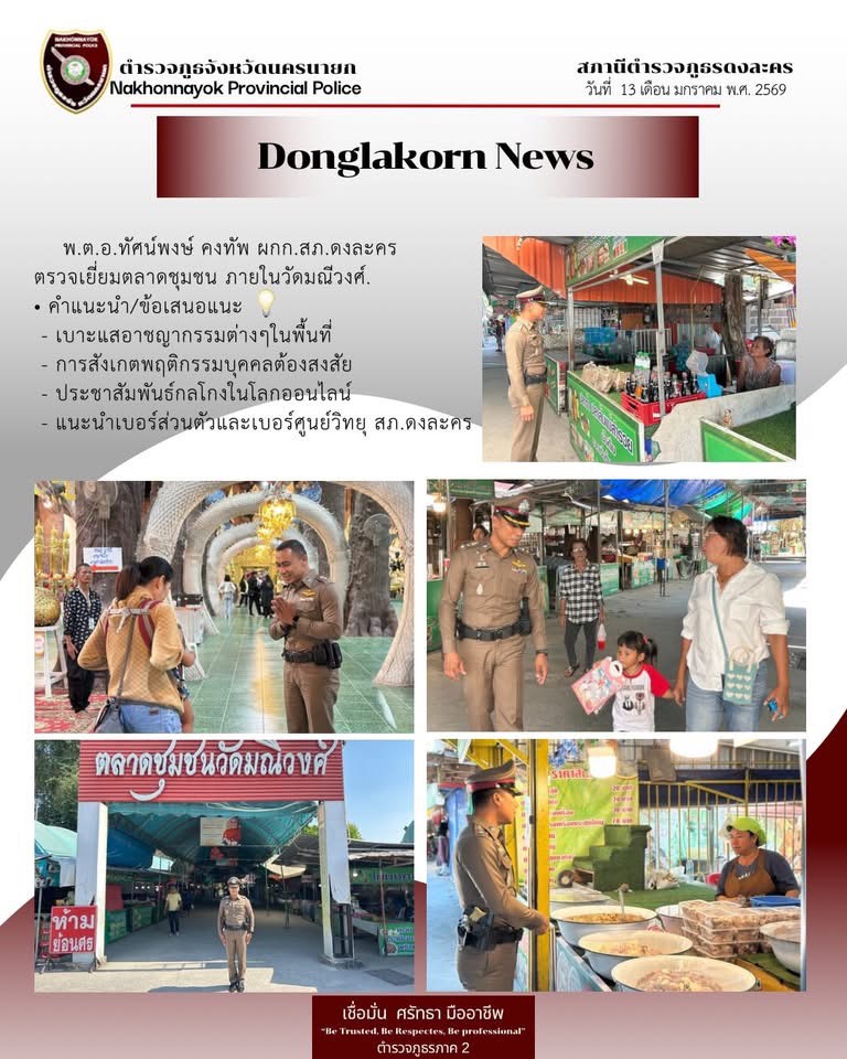 พ.ต.อ.ทัศน์พงษ์ คงทัพ ผกก.สภ.ดงละคร ตรวจเยี่ยมตลาดชุมชน ภายในวัดมณีวงศ์