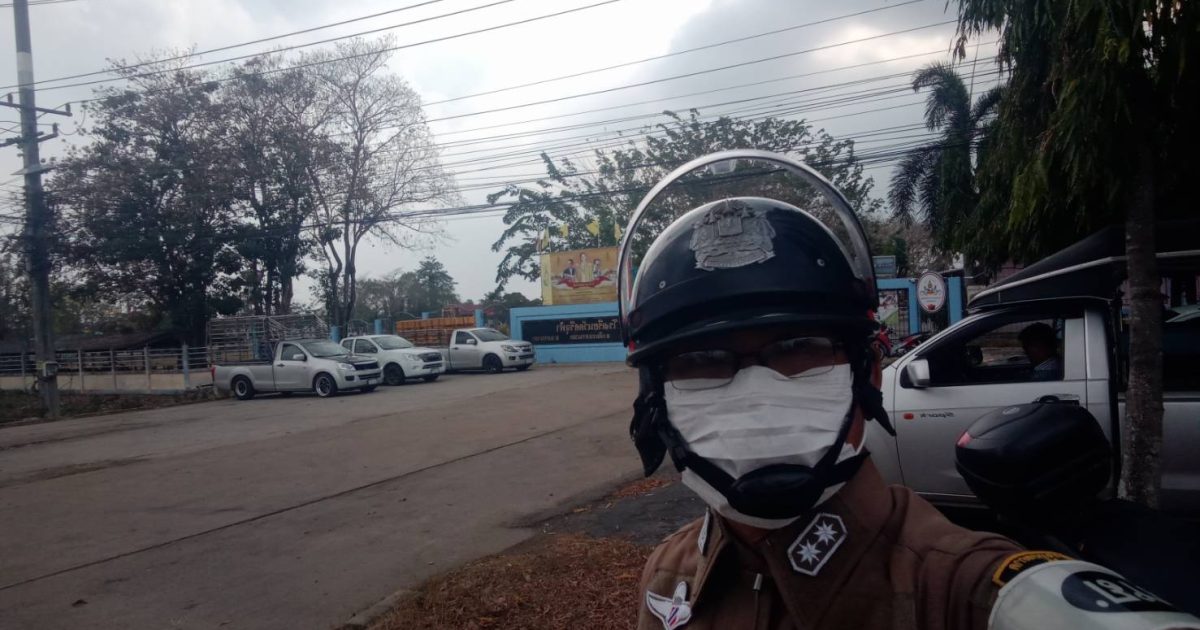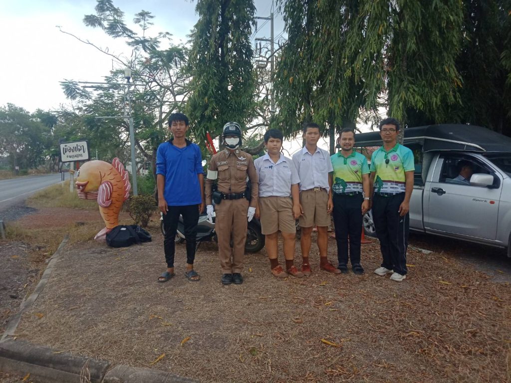 ร.ต.ท.สุระ แสงรัมย์ รอง สว.(จร.) สภ.ดงละคร อำนวยความสะดวกด้านการจราจรหน้าโรงเรียนวัดศรีจุฬา