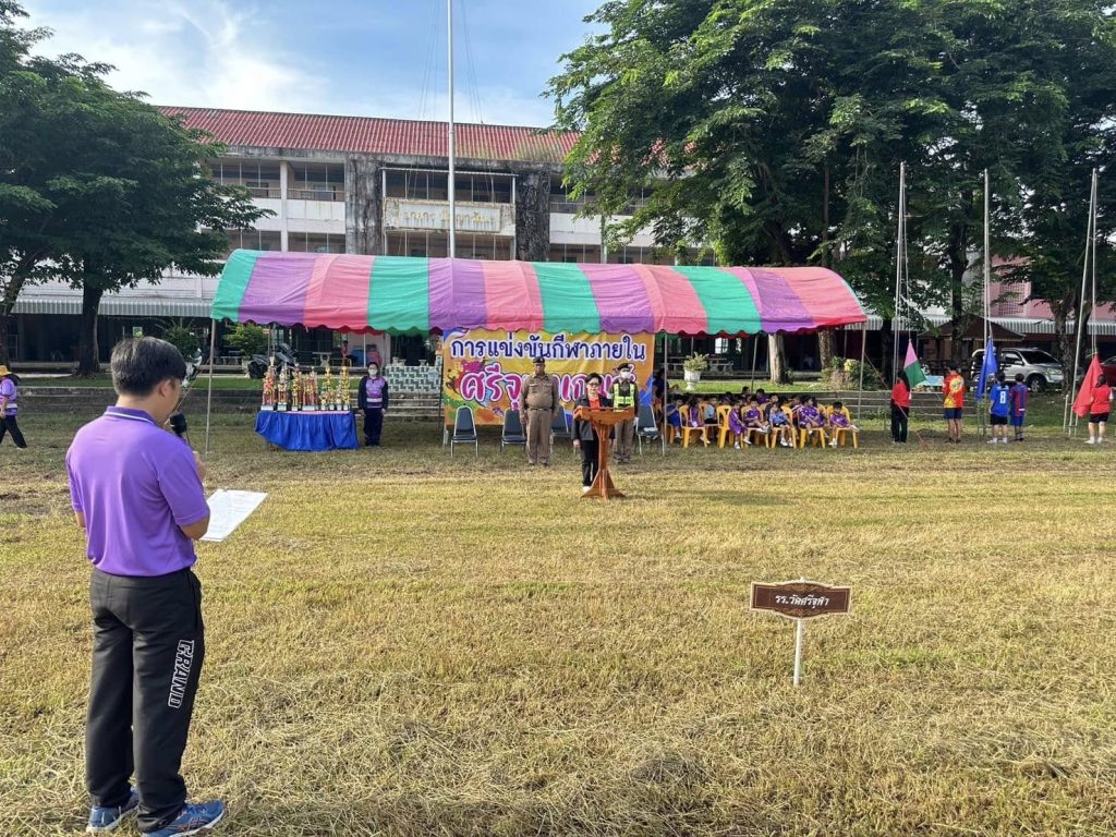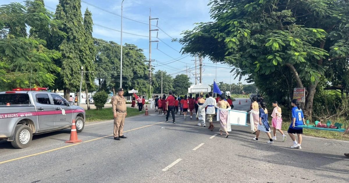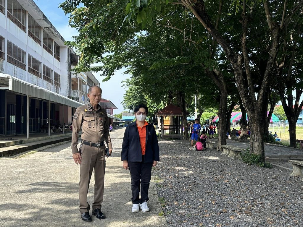 เจ้าหน้าที่ตำรวจ สภ.ดงละคร อำนวยความสะดวกด้านการจราจร และดูแลความเรียบร้อย กิจกรรมการแข่งขันกีฬาสีภายในโรงเรียนวัดศรีจุฬา