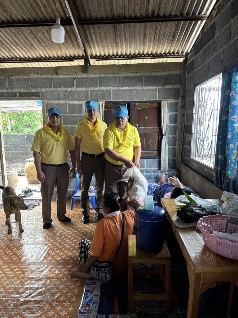 นายสุธาวุธ สุขชม บ้านเลขที่ 3/2 ม.9 ต.ดงละคร อ.เมือง จ.นครนายก ซึ่งเป็นผู้ป่วยกลุ่มเปราะบาง(18 กลุ่มโอกาส) ผู้ป่วยติดเตียงในพื้นที่ซึ่งเป็นประชาชนจิตอาสา