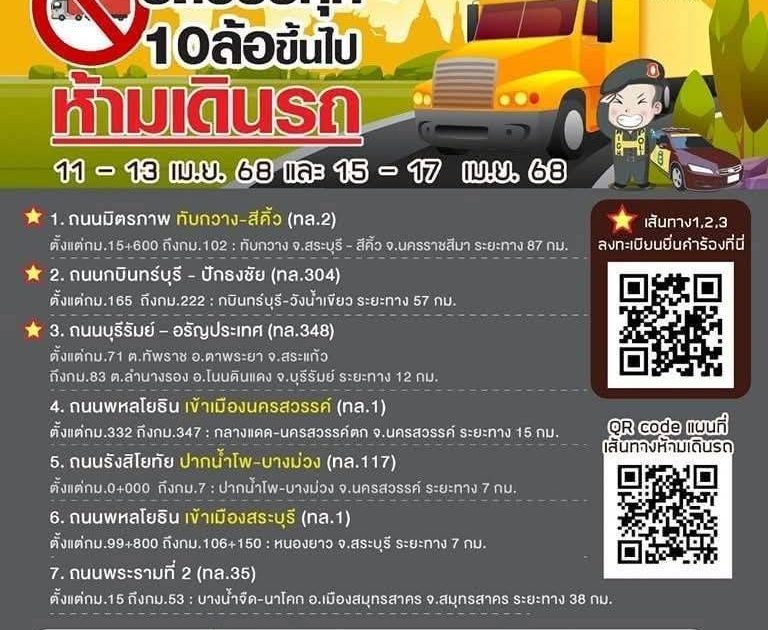 ศูนย์บริหารงานจราจร สำนักงานตำรวจแห่งชาติ ประชาสัมพันธ์ 7 เส้นทาง ห้ามรถบรรทุก 10 ล้อขึ้นไป เดินรถในช่วงเทศกาลสงกรานต์